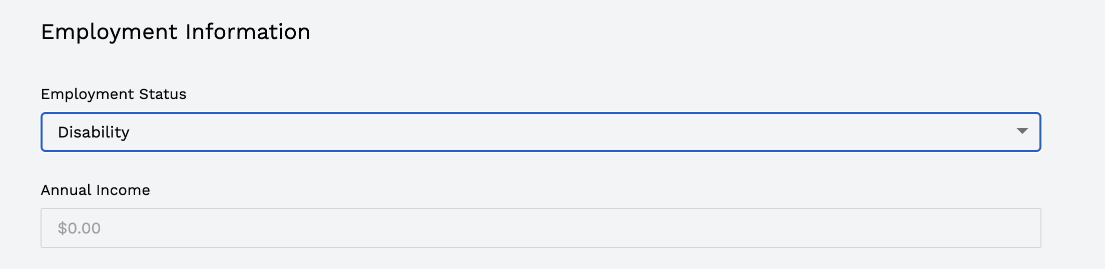 Guidance: The homeowner's employment status is a required field. The options could are as follows:
